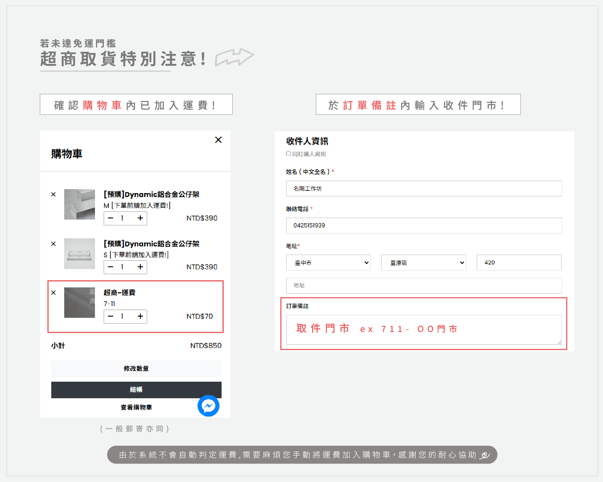 * 若未選擇正確運費選項,我們將主動聯繫補足 *