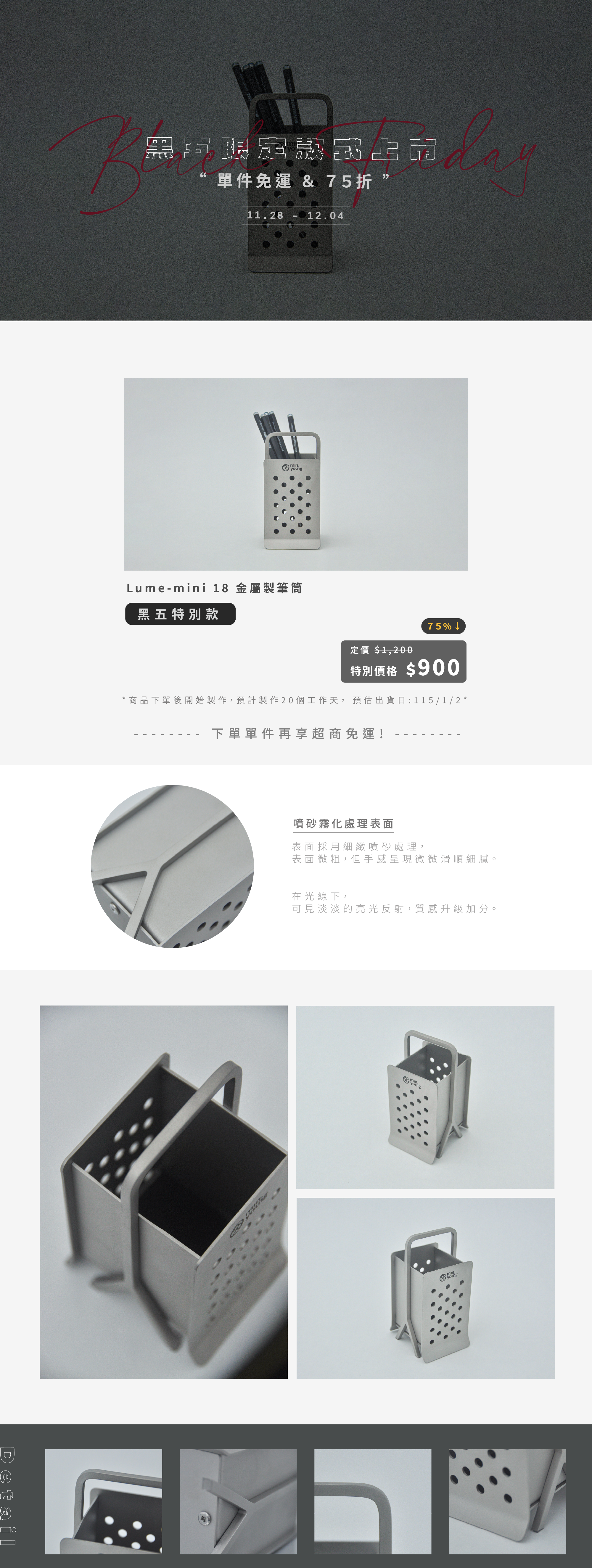 [活動結束]Lume-mini 18 金屬製筆筒 - 黑五限定款