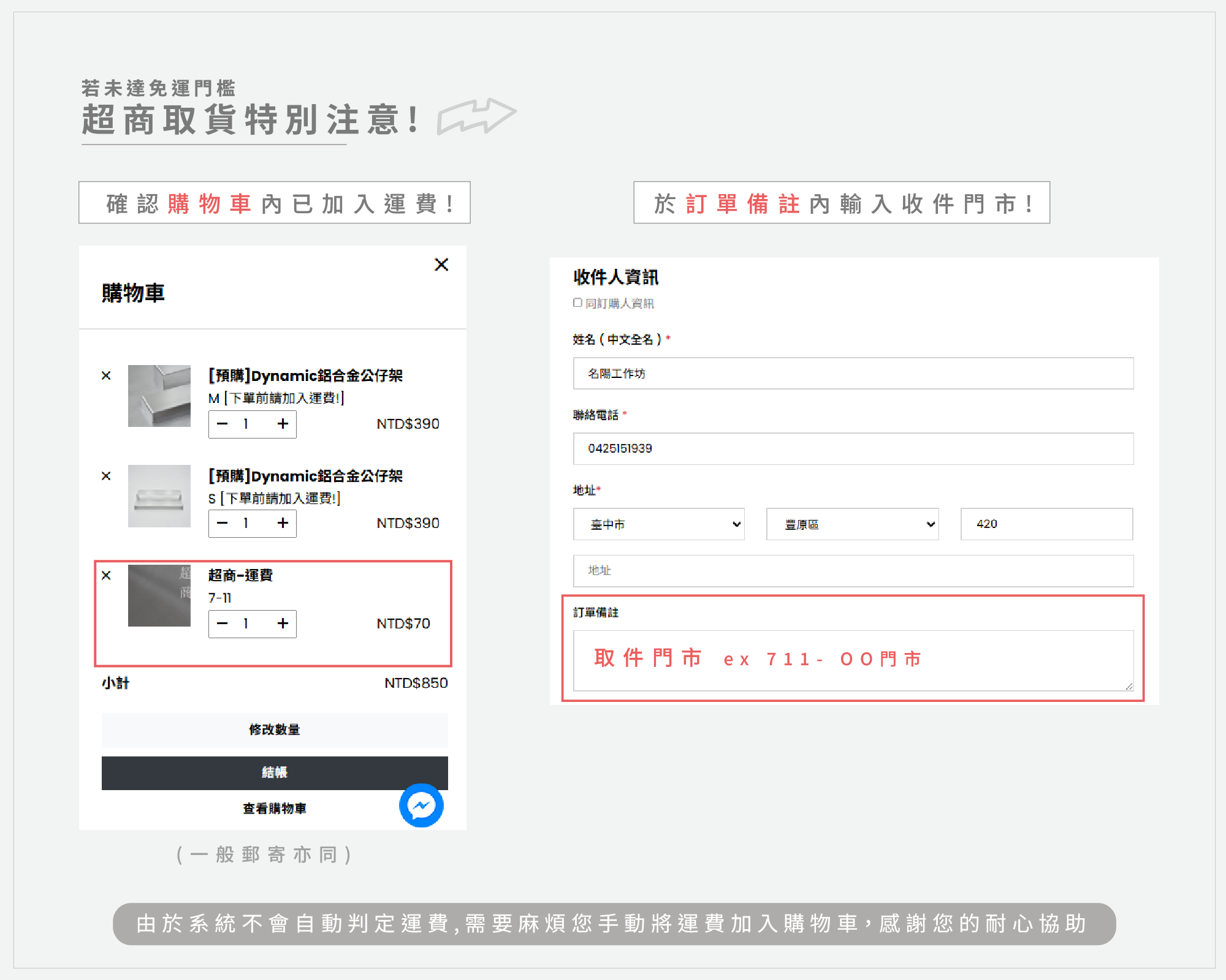 * 若未選擇正確運費選項,我們將主動聯繫補足 *