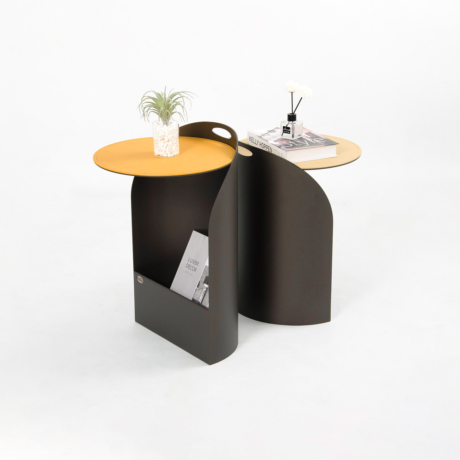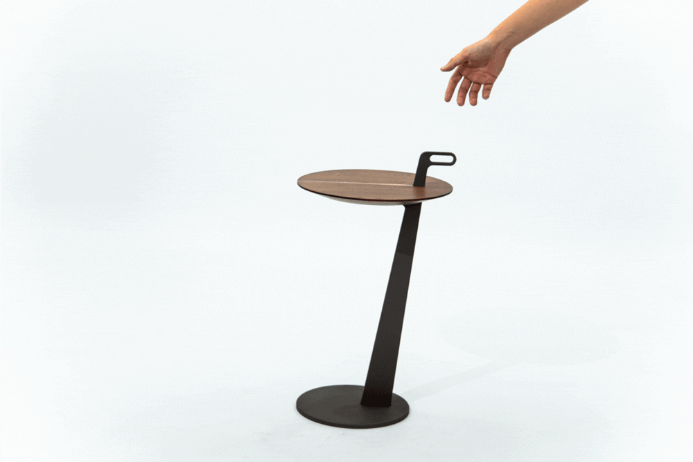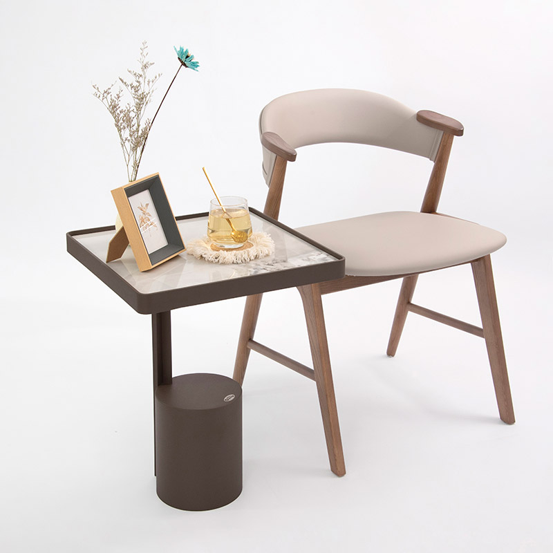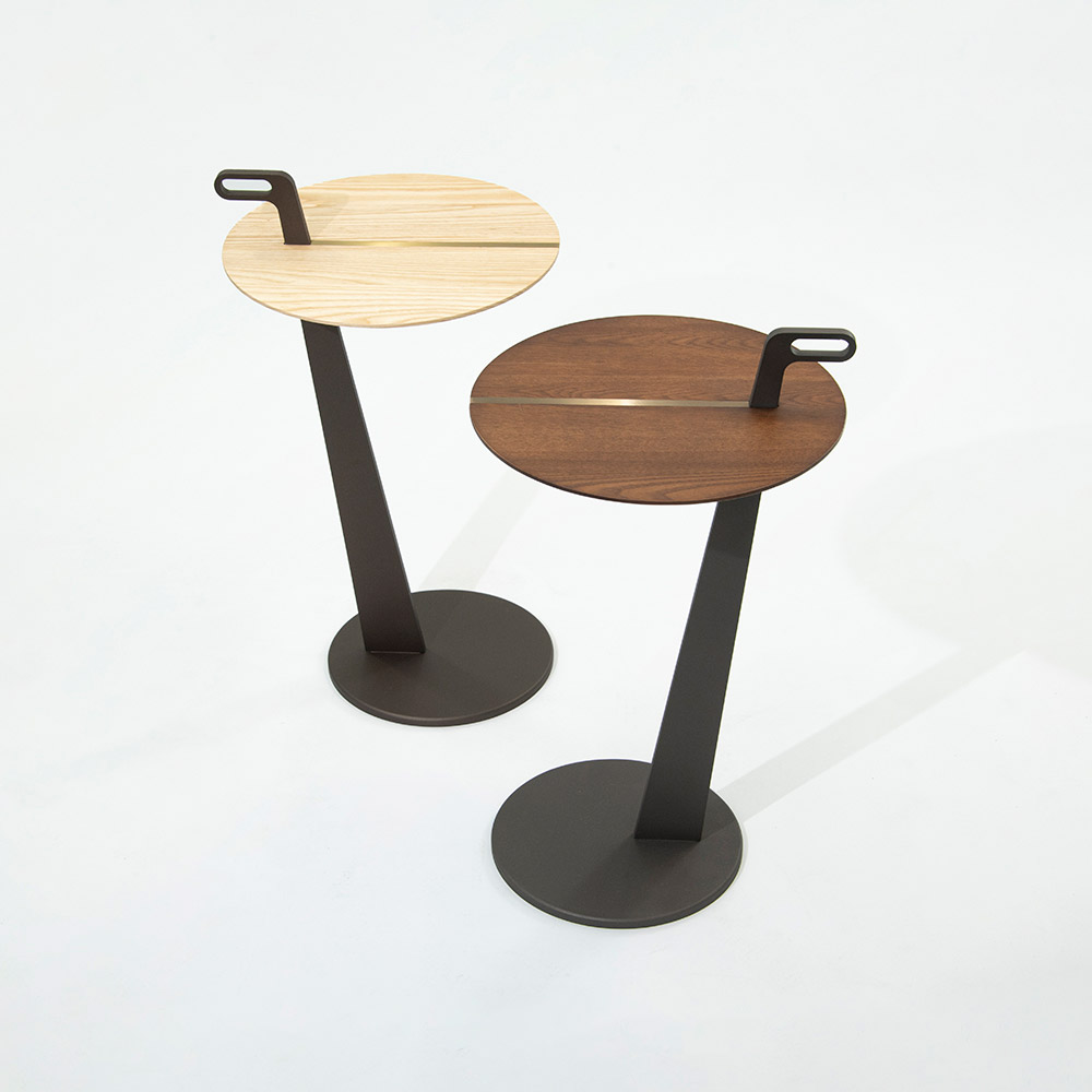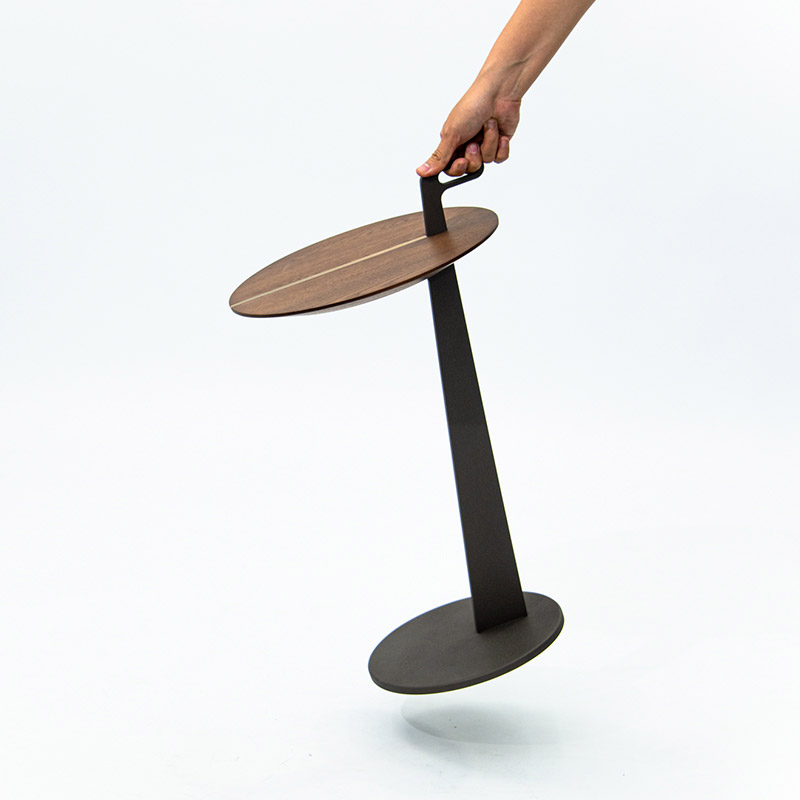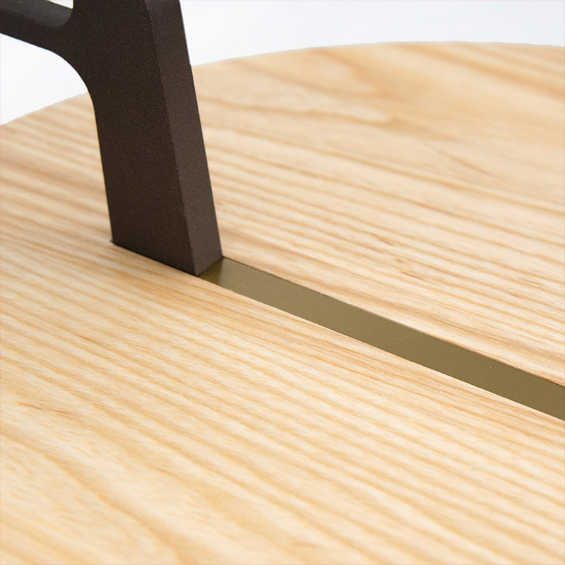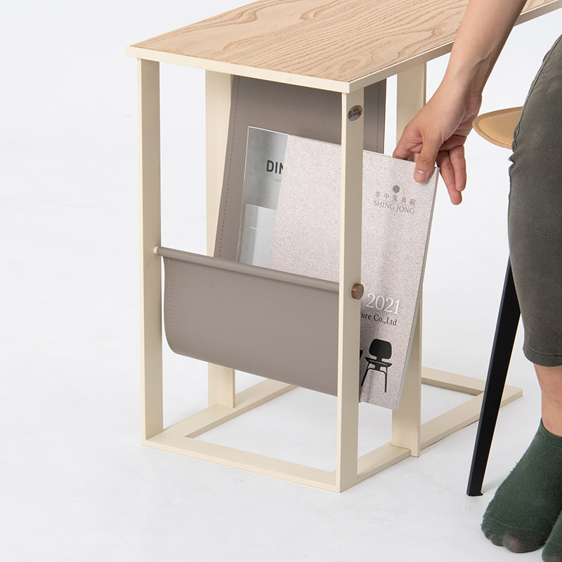 - 支撐腳握把設計,貫穿木質桌板,呈現俐落三角形為空間定調簡潔、清爽的個性。