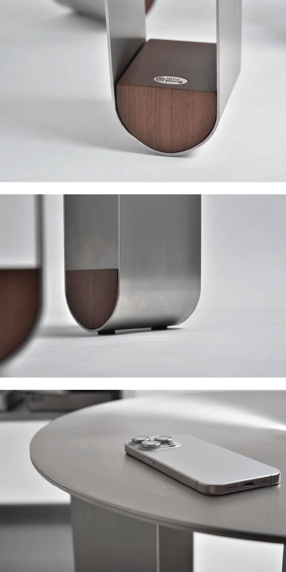 手工髮絲紋理在不同光線下折射出的細膩光澤,配合桌腳間的鏤空設計,賦予了金屬件前所未有的輕盈感。