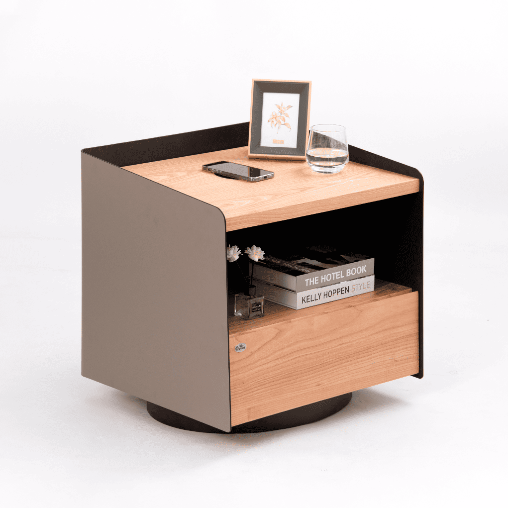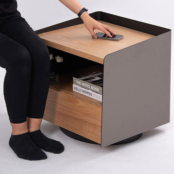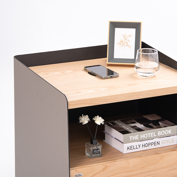 無線充電床頭櫃 - 原木色