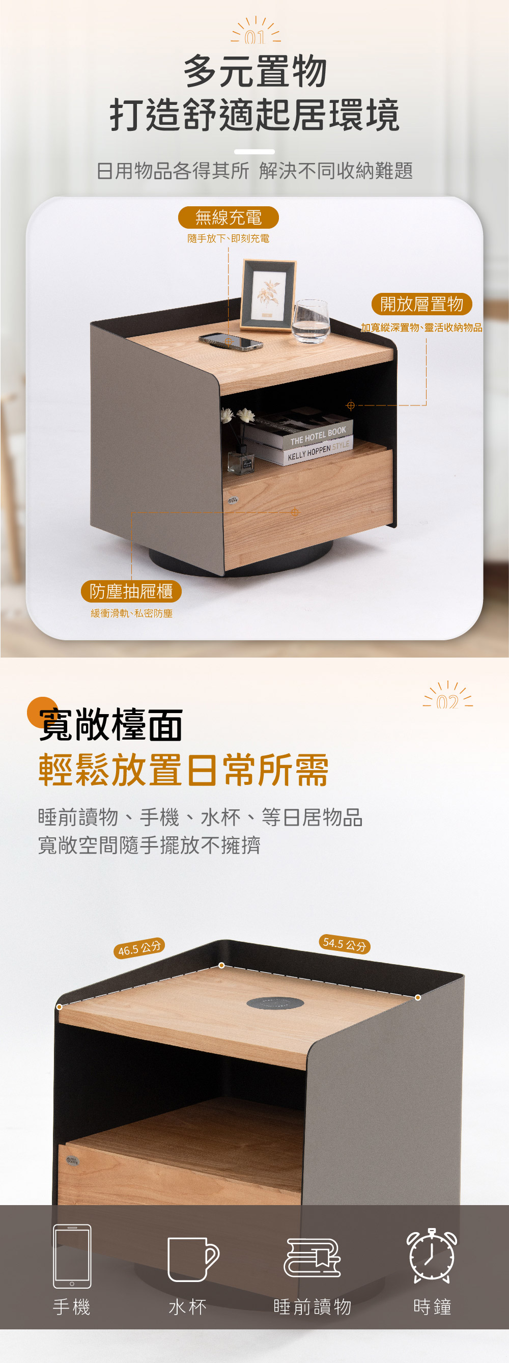 無線充電床頭櫃