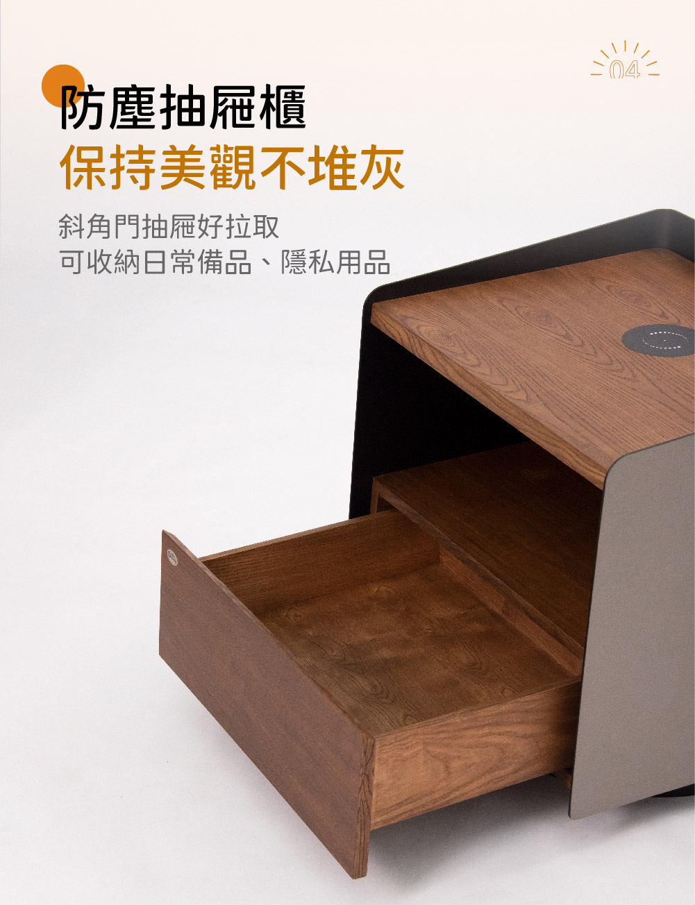 - 防塵抽屜櫃,可收納日常備品、隱私用品,保持美觀不堆灰。