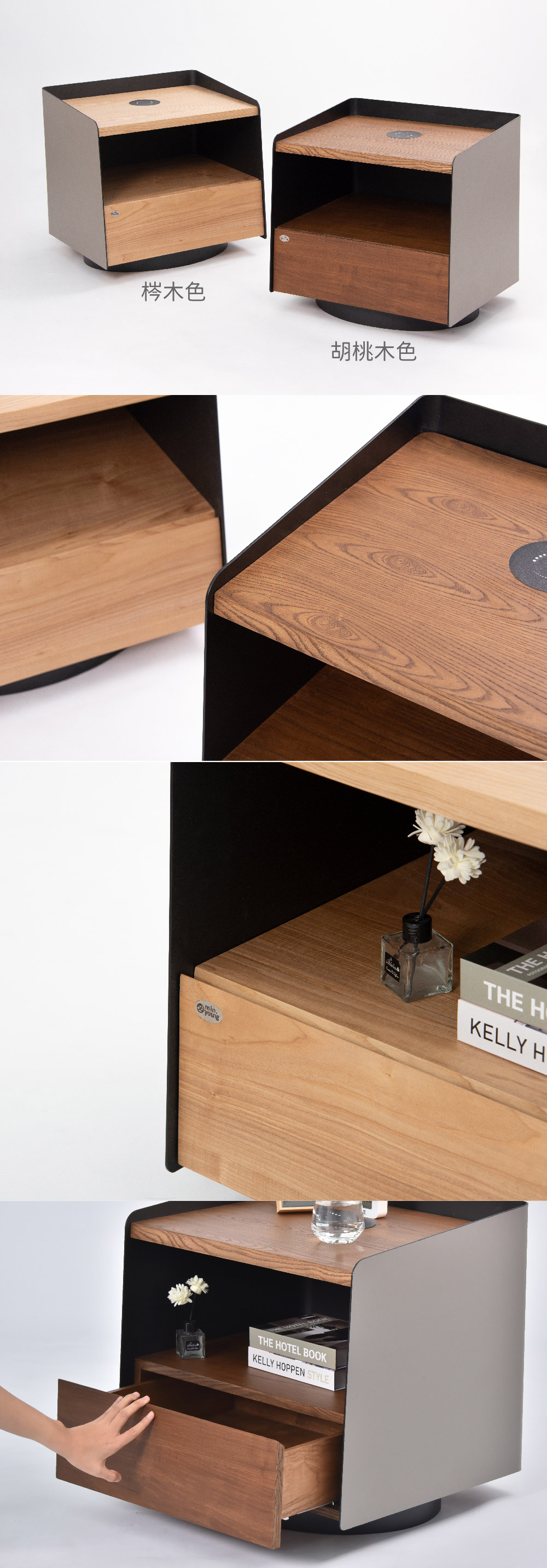 - 材質:黑鐵、皮革、木質夾板、無限充電器