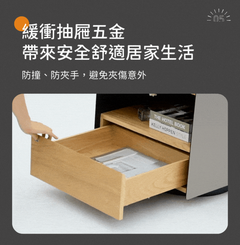 - 緩衝抽屜滑軌、安靜、防撞、防夾手。