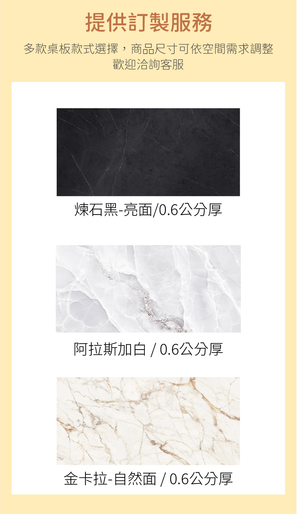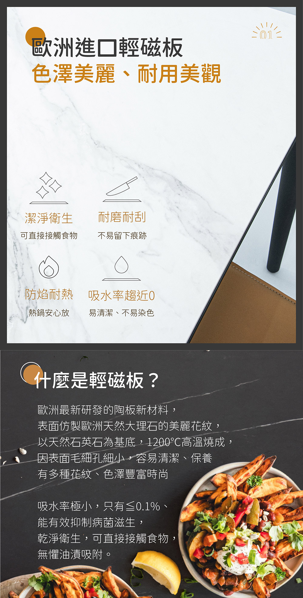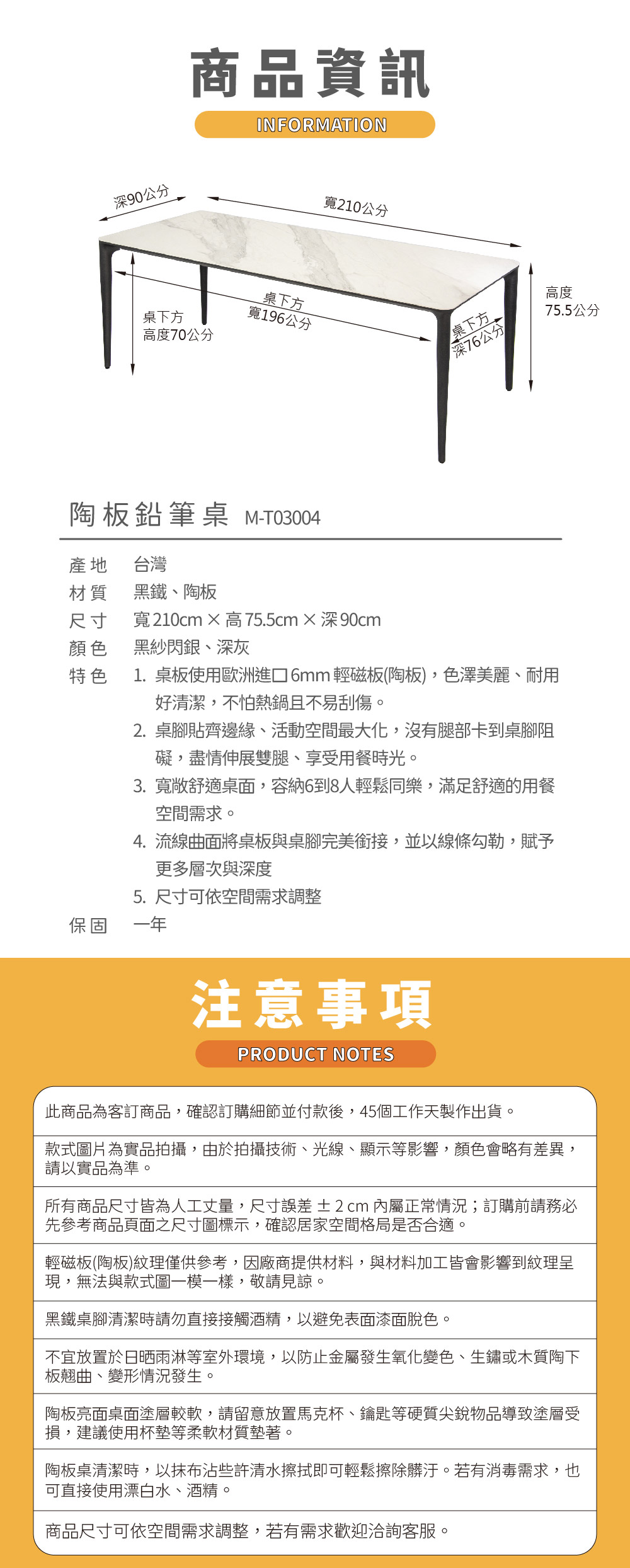 - 桌板使用歐洲進口 6mm 輕磁板(陶板),色澤美麗、耐用好清潔,不怕熱鍋且不易刮傷。