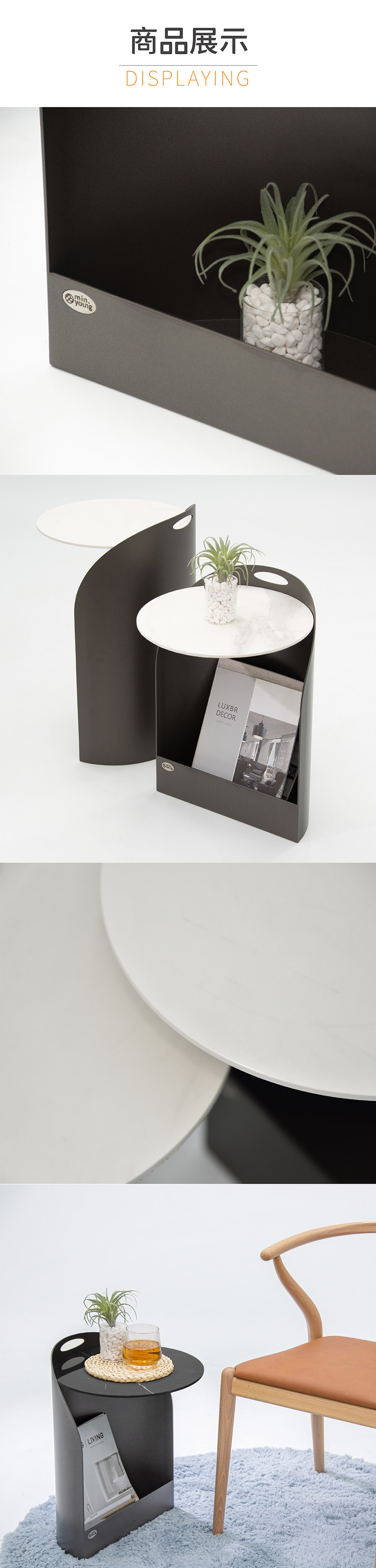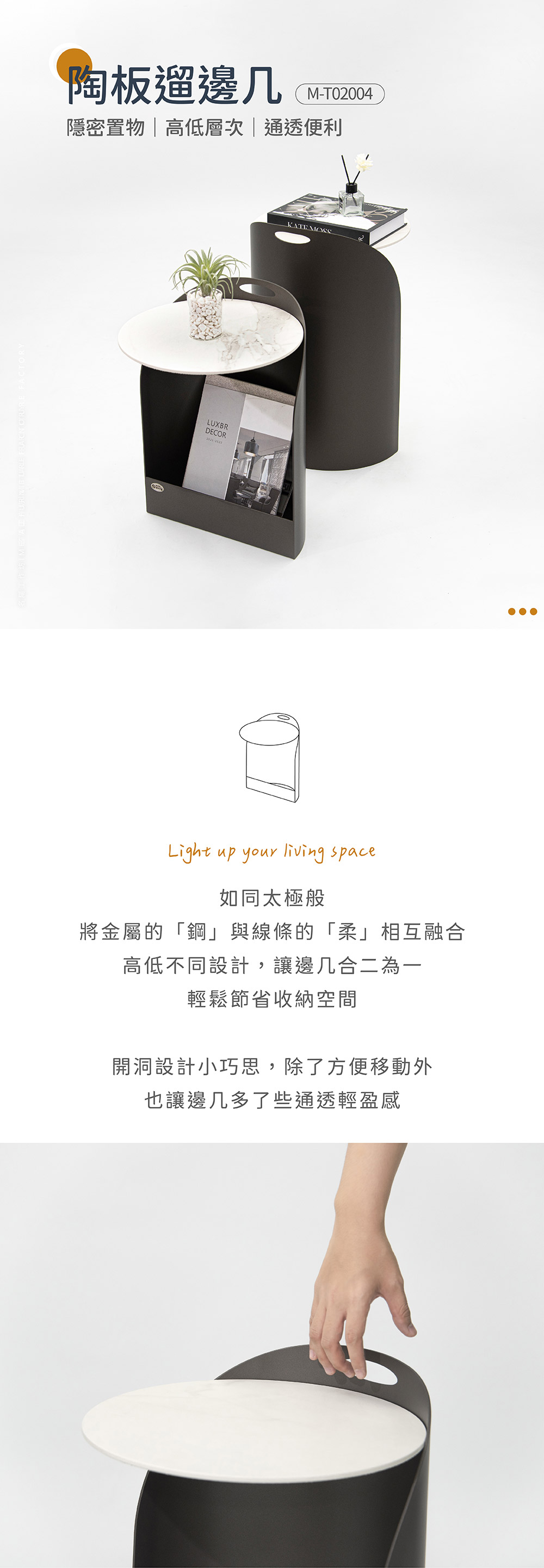 - 高低交錯檯面、閒置時可合二為一節省空間,為家中增添優雅且不可少的邊几