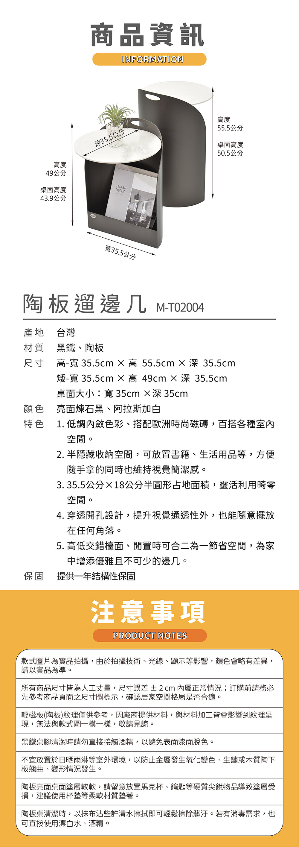 - 商品特色:保固:提供一年結構性保固