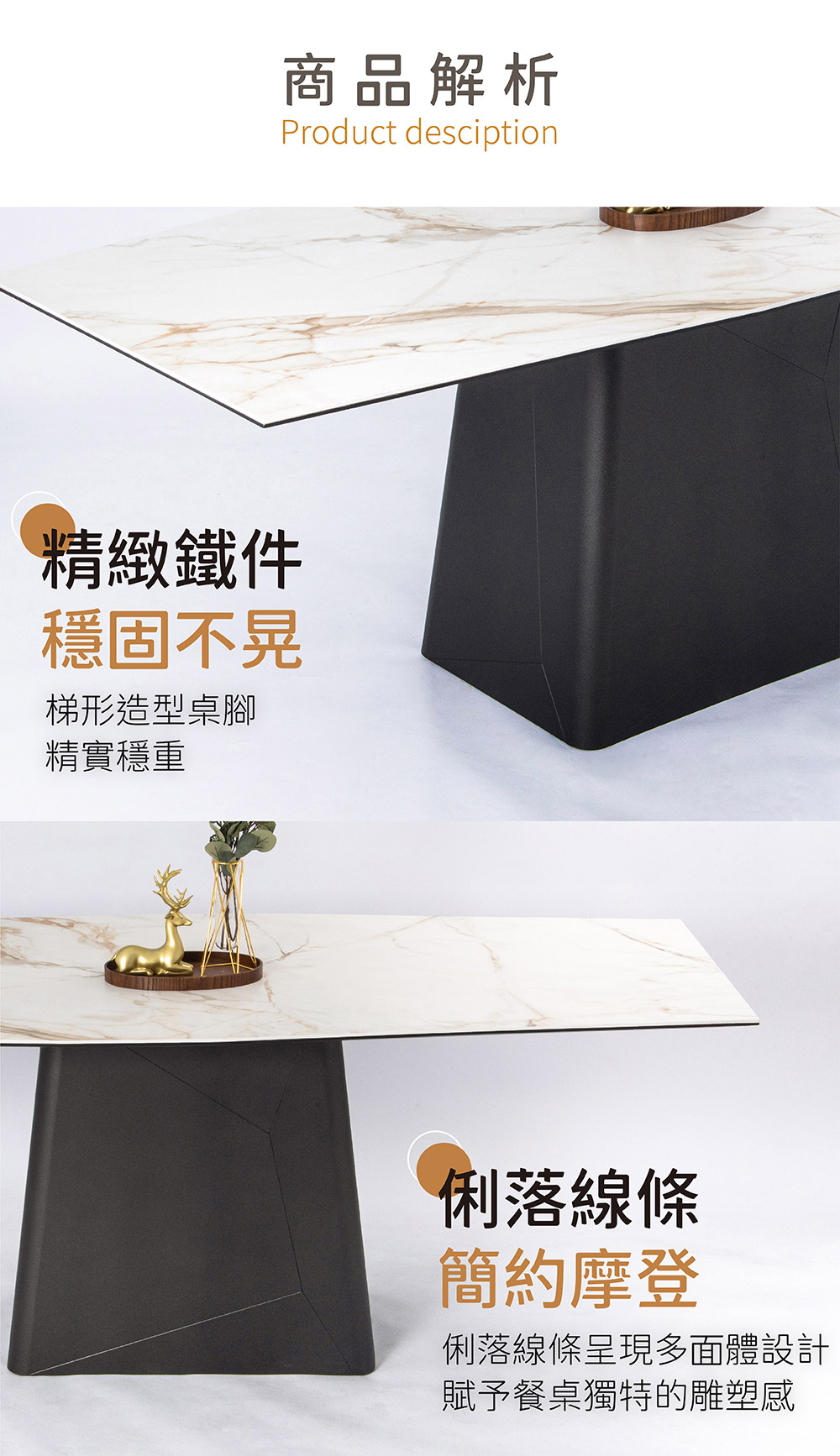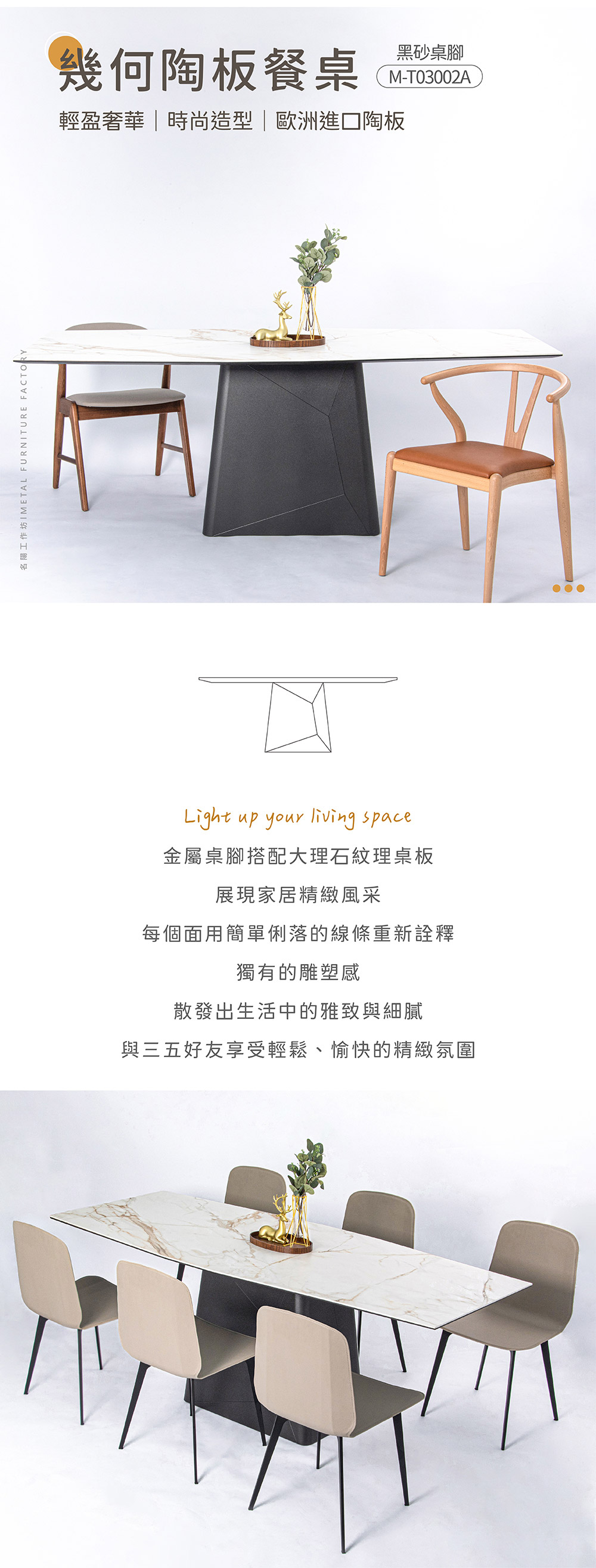 - 俐落線條呈現多面體設計,賦予餐桌獨特的雕塑感,簡約有形、適用各種空間。
