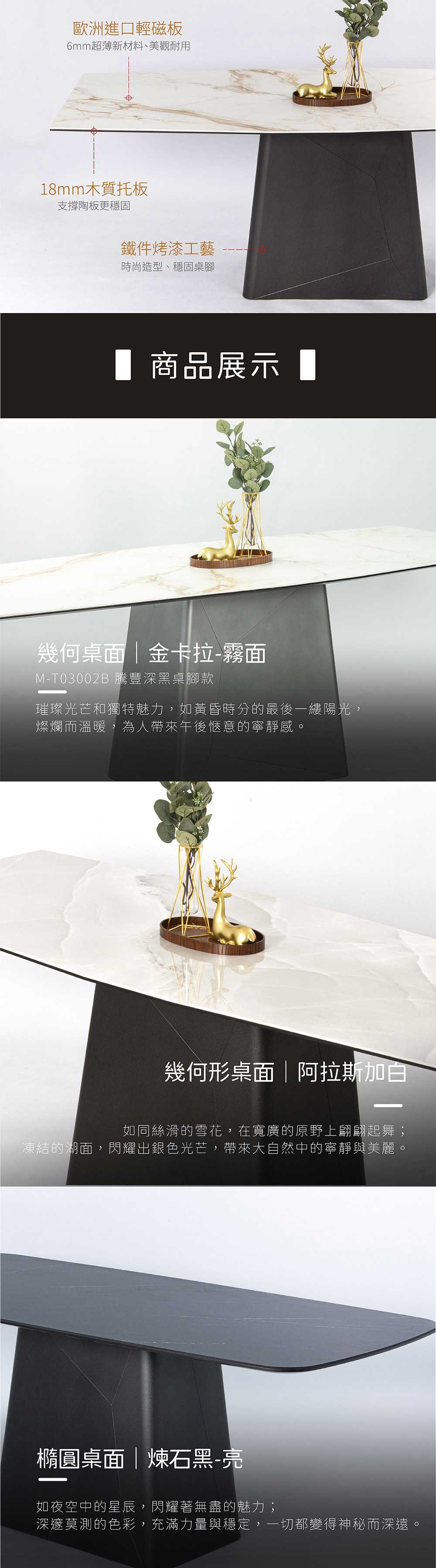 幾何陶板餐桌 - 黑砂桌腳 (三色)