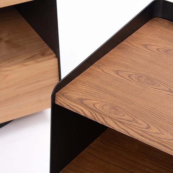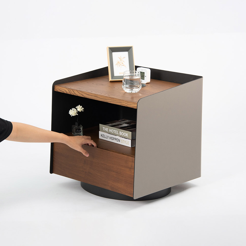無線充電床頭櫃 - 胡桃木色