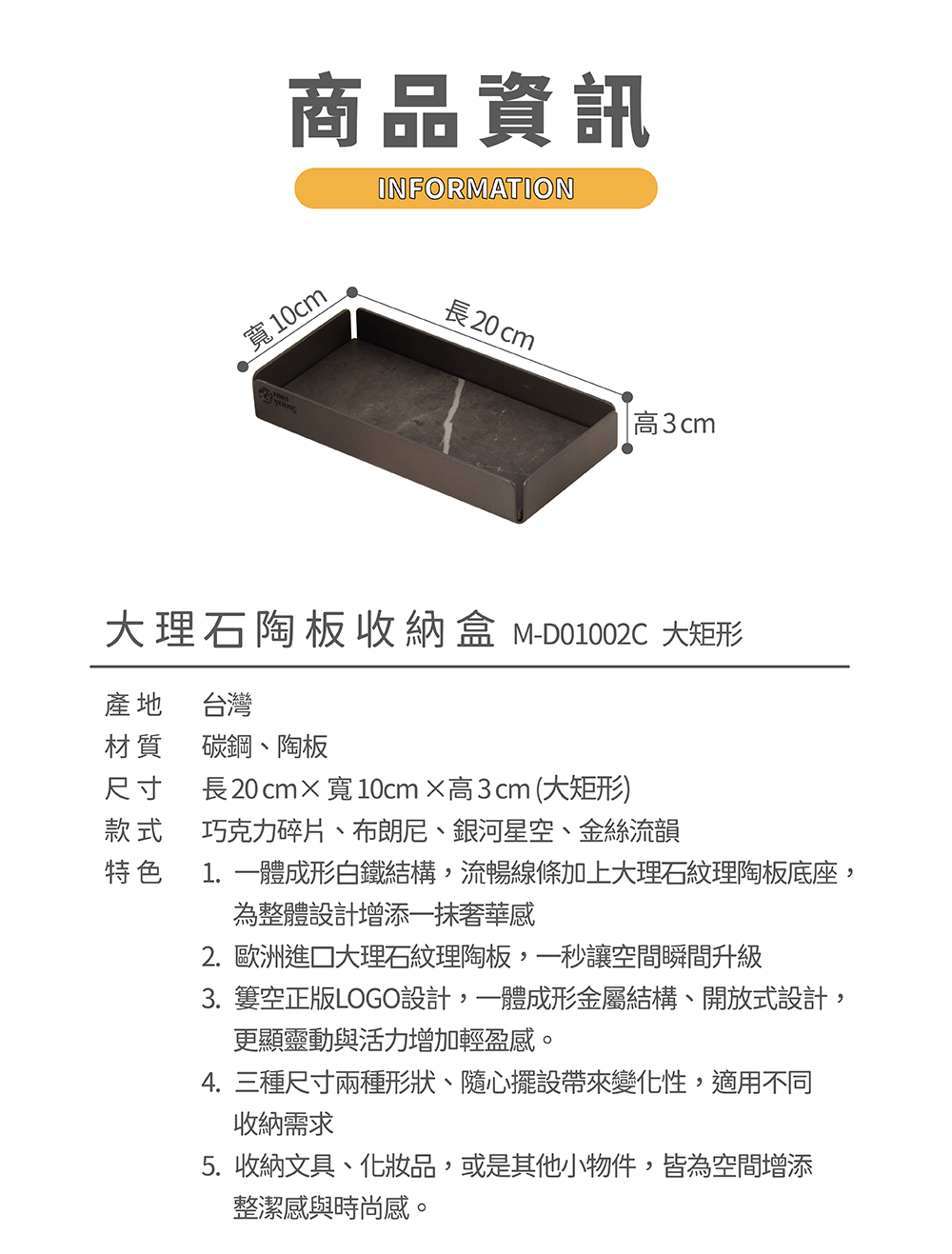 Beleza大理石陶板收納盒