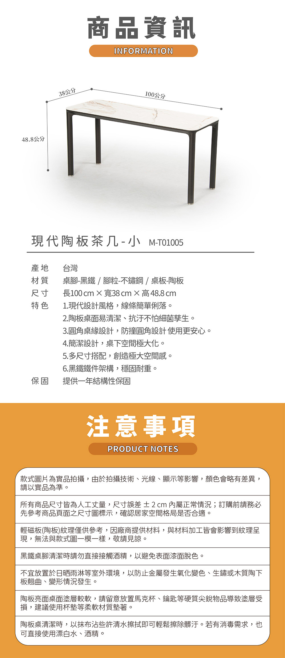材質:桌腳-黑鐵/腳粒-白鐵/桌板-陶板