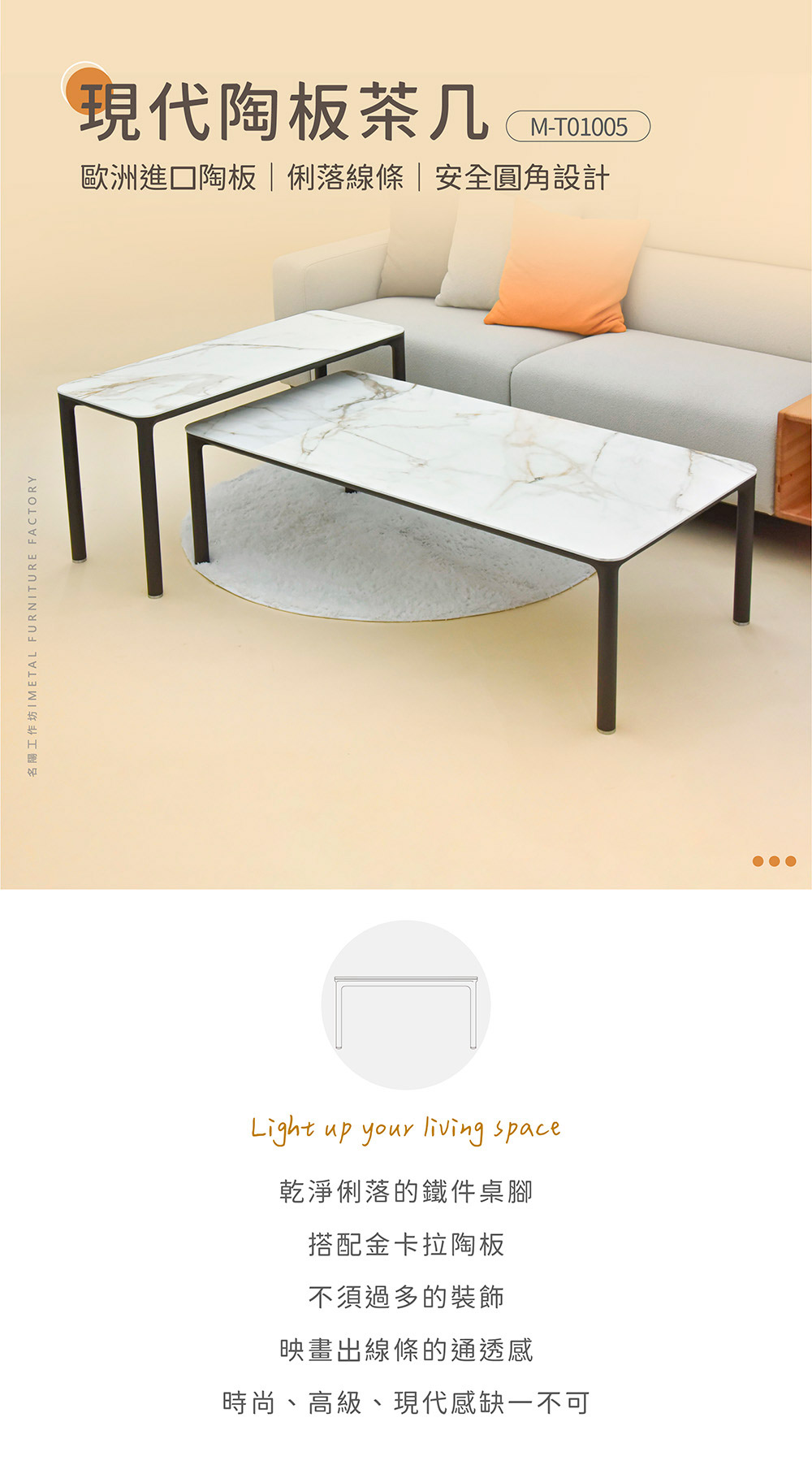 材質:桌腳-黑鐵/腳粒-白鐵/桌板-陶板
