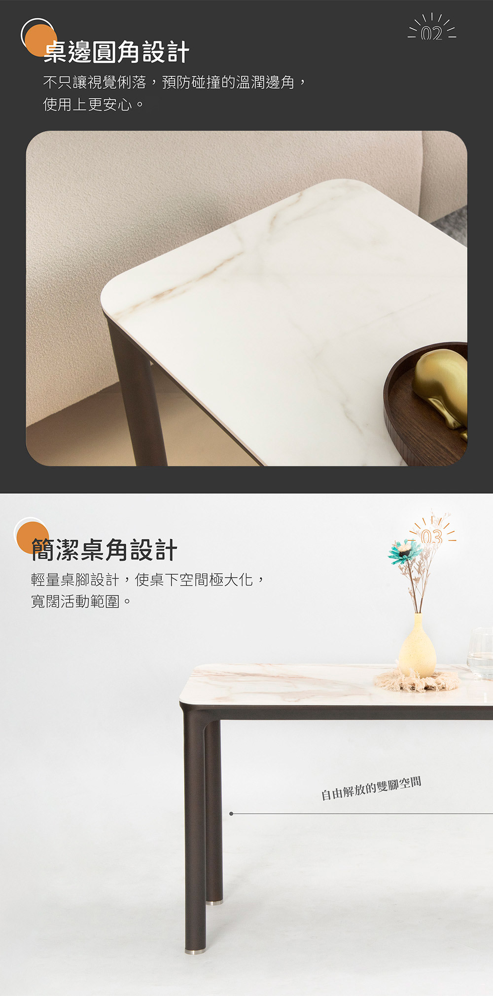 3. 圓角桌緣設計,防撞圓角設計 使用更安心。