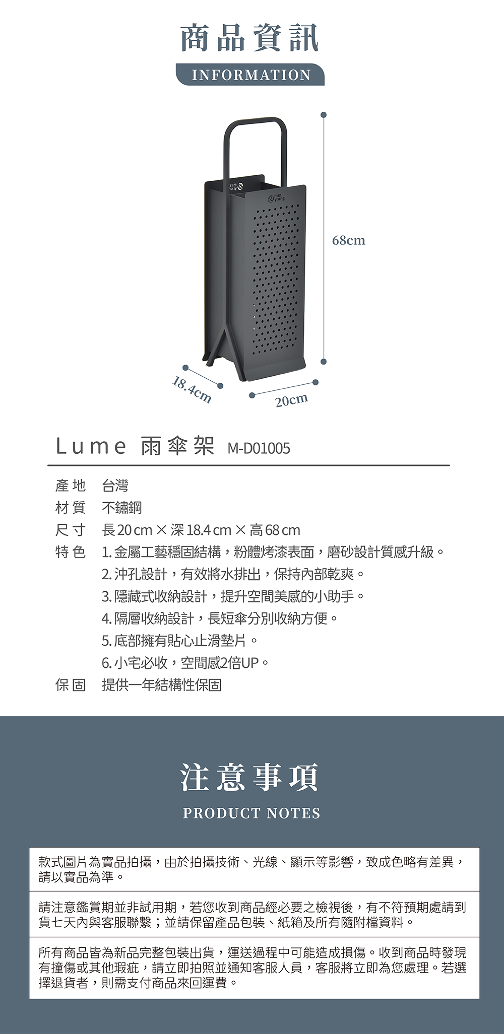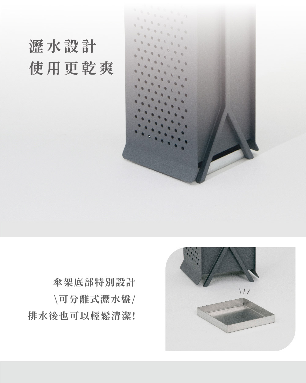 - 沖孔設計,有效將水排出,保持內部乾爽。